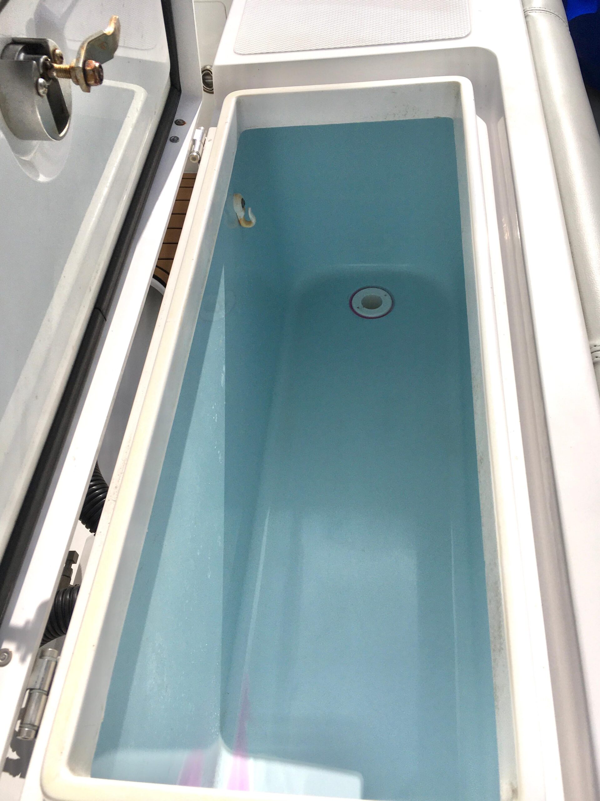 - Aft Port & Starboard Insulated In-deck Fishbox/Dry Storage (6’, 75 gal each)