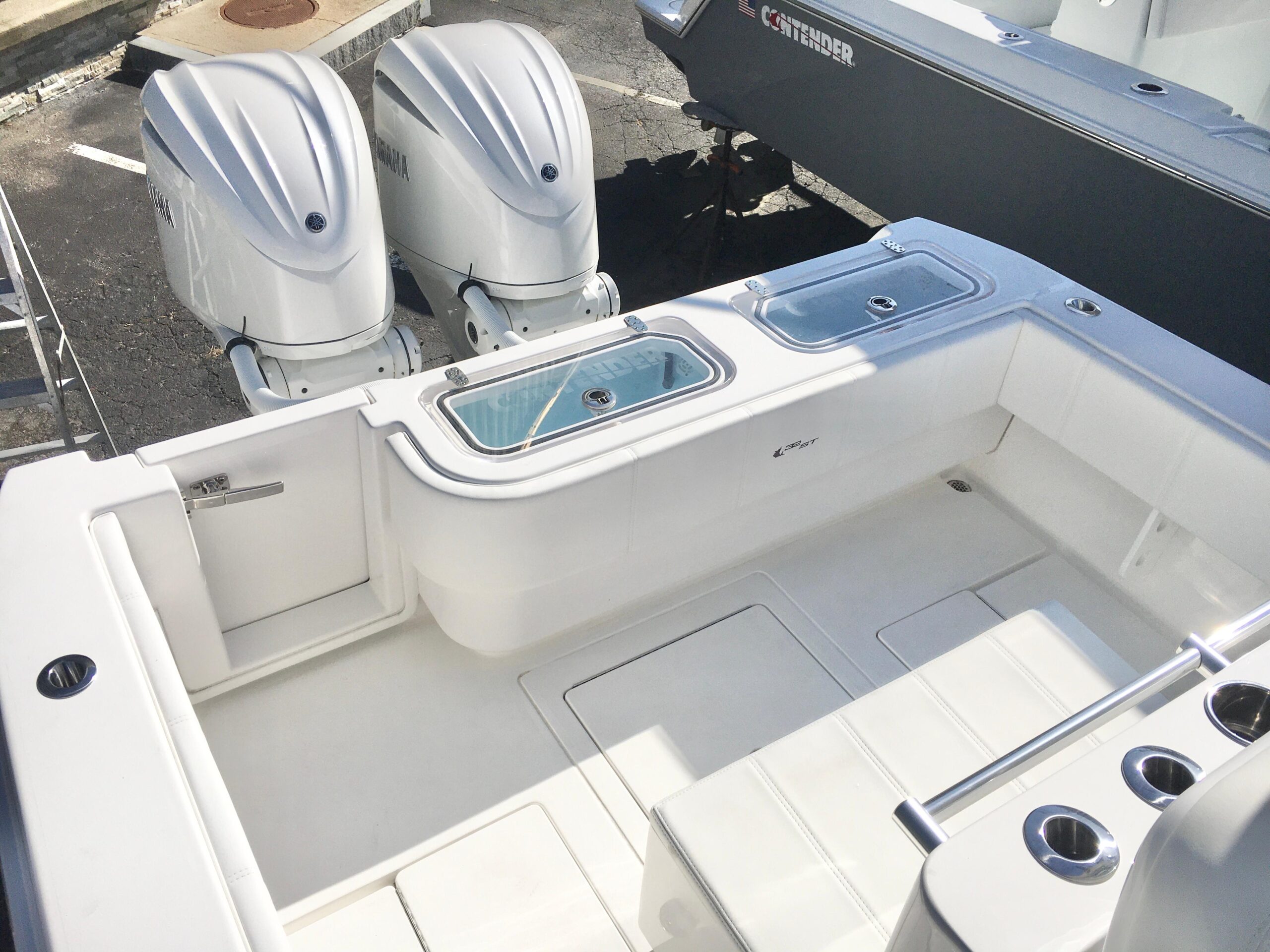 Now available: 2024 Contender 32 ST Offshore Sport Fishing Center Console, in stock and ready for delivery from East Shore Marine, Long Island’s exclusive Contender dealer. Powered by twin Yamaha 300HP engines, this model comes equipped with a hard T-top and enclosure, Gemlux telescoping outriggers, Llebroc chairs with armrests and power sliders, and Livorsi trim tabs. Comfort and convenience features include an electric head with Y-valve, rear-facing seat with cooler, multi-color under-gunnel lights, and underwater lighting. Fully loaded with standard equipment and so much more—don’t miss this one!